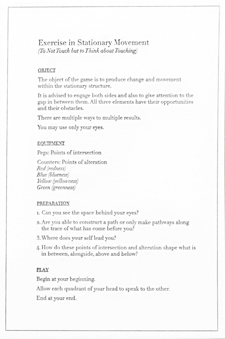 Exercise in Stationary Movement (To Not Touch but To Think About Touching), 2017