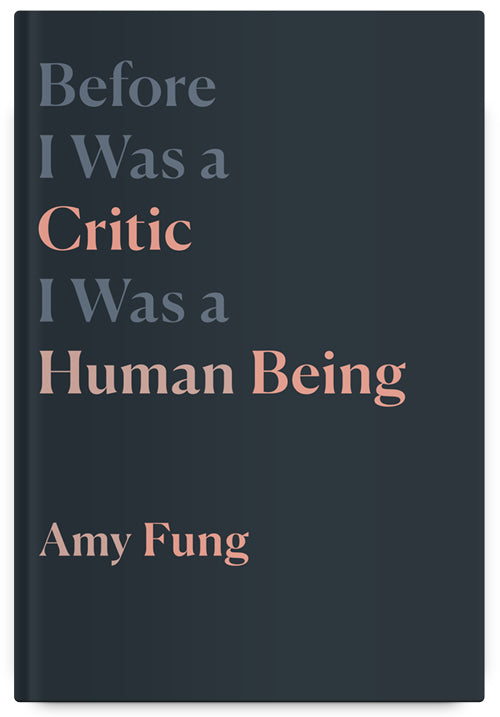 Before I Was a Critic I Was a Human Being is the debut collection of nonfiction essays by Amy Fung. In it, Fung takes a closer examination at Canada's mythologies of multiculturalism, settler colonialism, and identity through the lens of a national art critic.