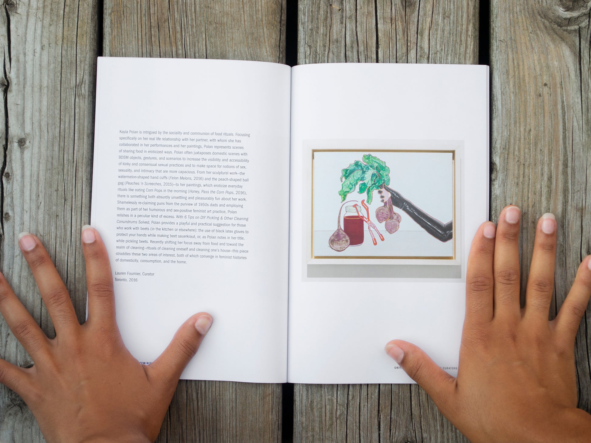 The catalogue contains the curatorial essay "Critical Kombucha, Dirty Soap, and BDSM Beets: Fermenting Feminism through Contemporary Art Practices", Artist Biographies and Q&A's, and an exhibition checklist.