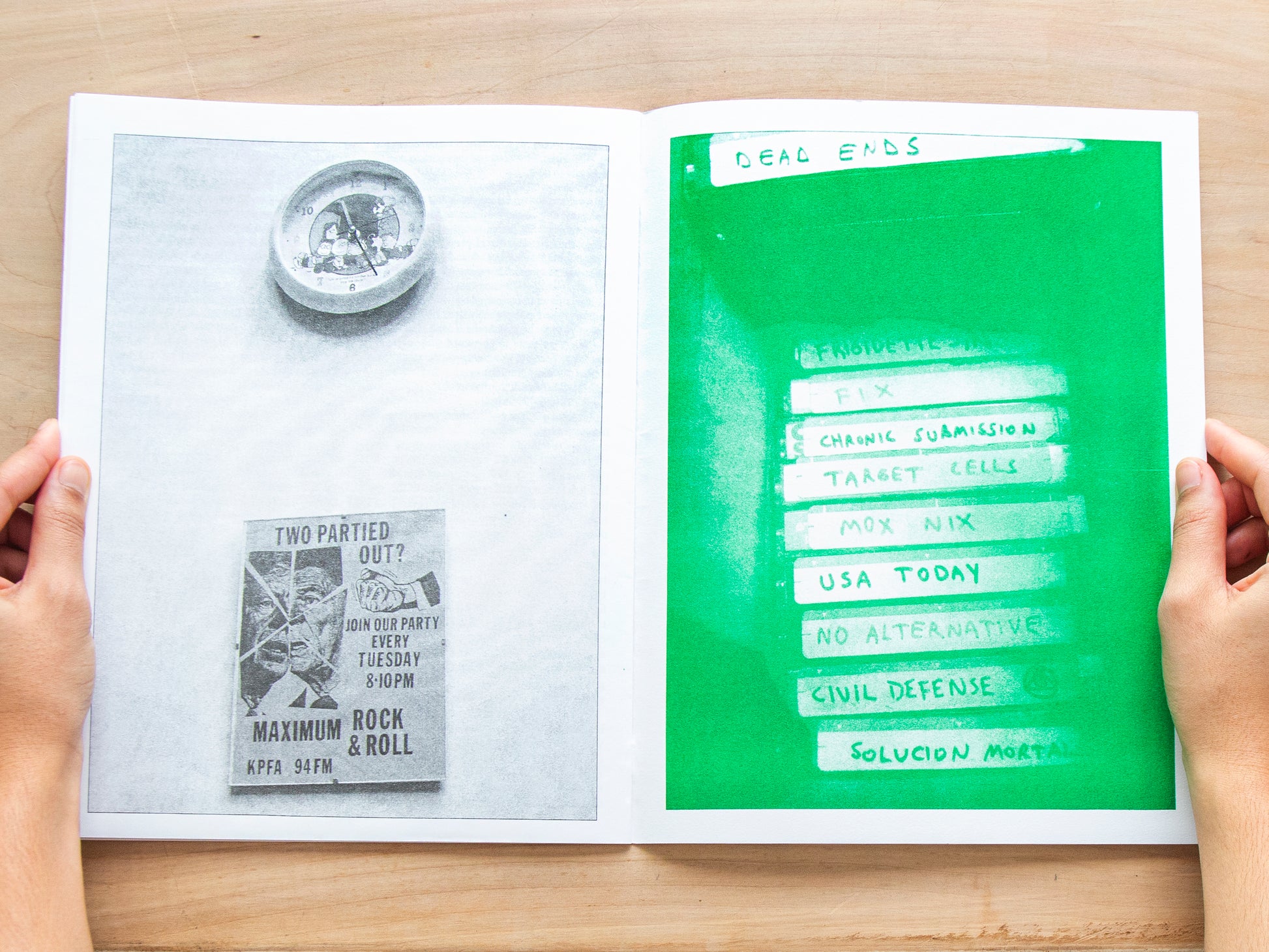 Softcover, staple bound, two colour risograph and digital colour insert