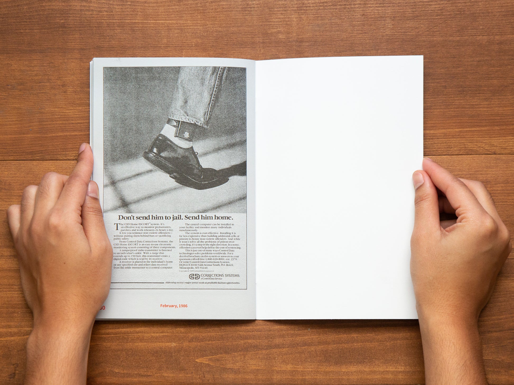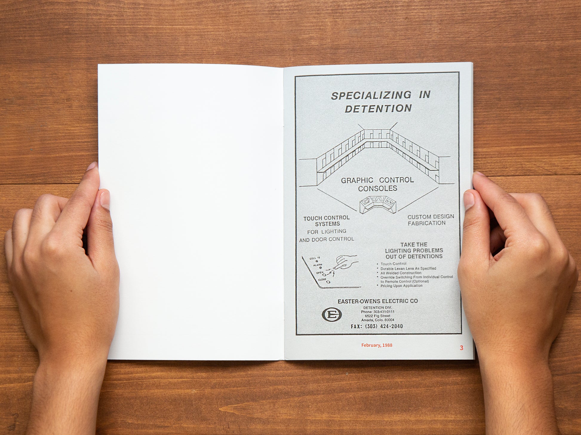 The ads in Library Excavations #1 are taken from the industry periodical Corrections Today, the professional membership magazine of the American Correctional Association, accessed in the Open Stacks of Chicago Public Library's Harold Washington Library Centre in 2016.