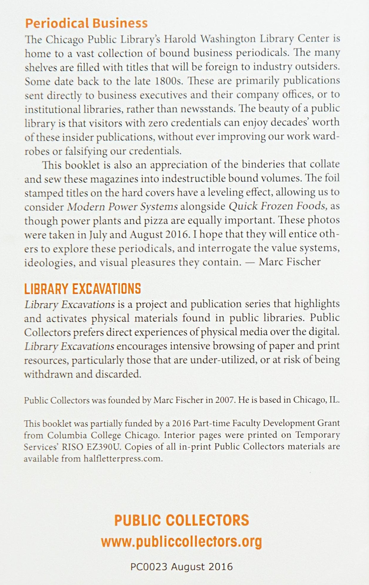 Library Excavations is a project and publication series that highlights and activates physical materials found in public libraries. Public Collectors prefers direct experiences of physical media over the digital. Library Excavations encourages intensive browsing of paper and print resources, particularly those that are under-utilized, or at risk of being withdrawn and discarded.