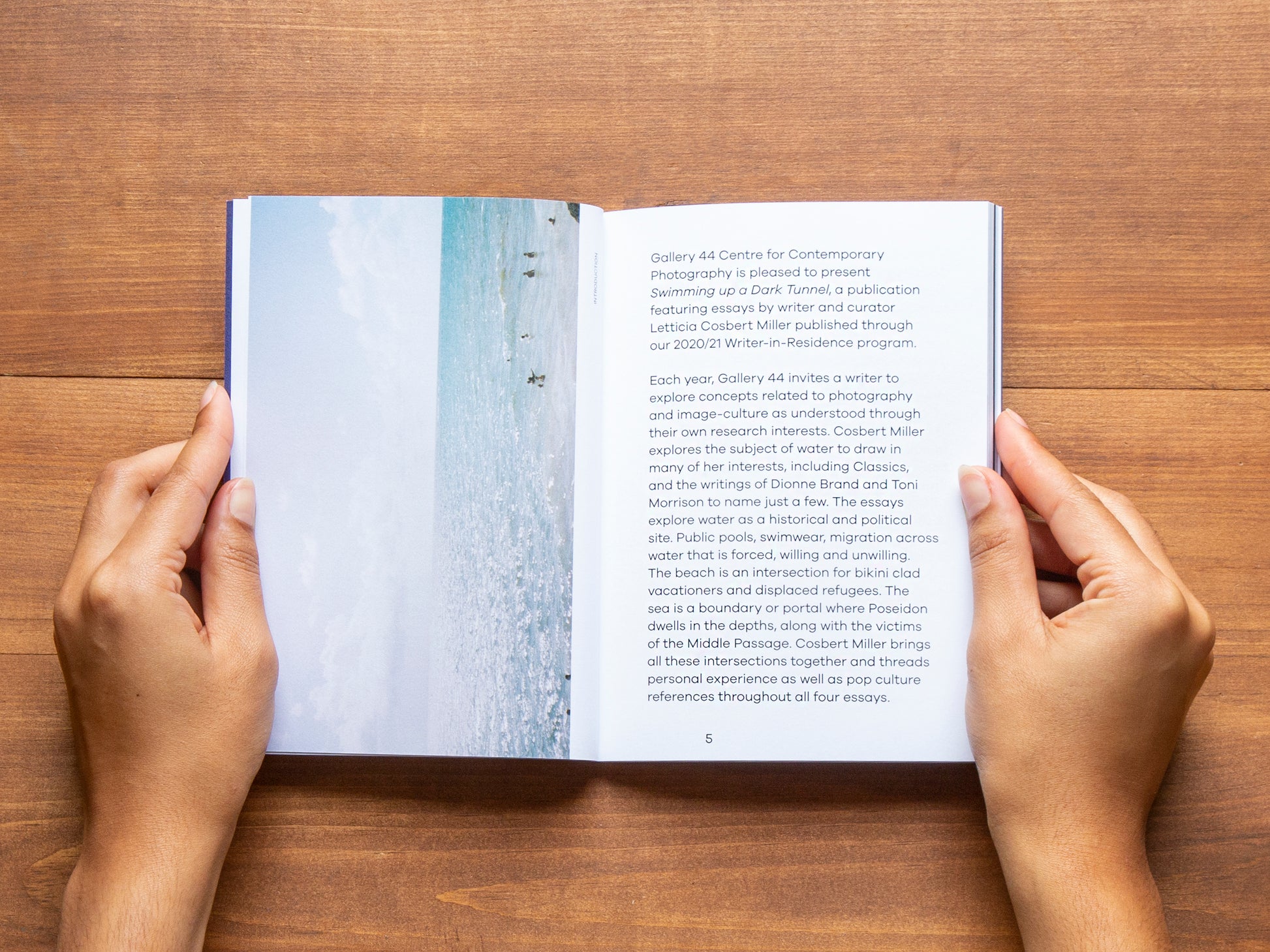Swimming up a Dark Tunnel features essays by writer and curator Letticia Cosbert Miller published through Gallery 44’s 2020/21 Writer-in-Residence program.